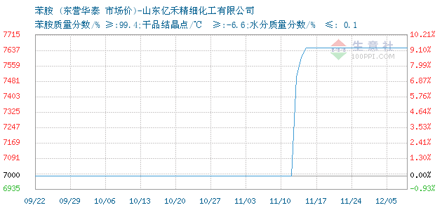 | 苯胺质量分数/% ≥:99.4;干品结晶点/℃ ≥:-6.6;水分质量分数/% ≤: 0.1 附加说明: |
