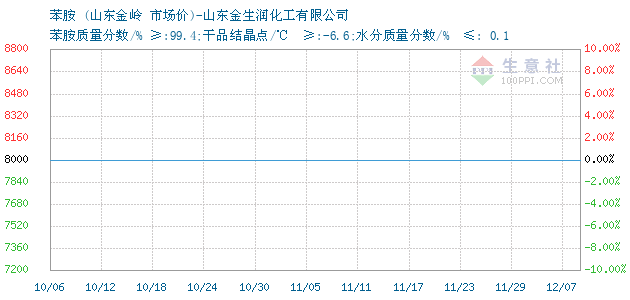 | 苯胺质量分数/% ≥:99.4;干品结晶点/℃ ≥:-6.6;水分质量分数/% ≤: 0.1 附加说明: |