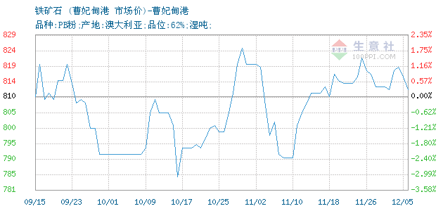 | 属性规格 | 品种:PB粉;产地:澳大利亚;品位:62%;湿吨; | ||
