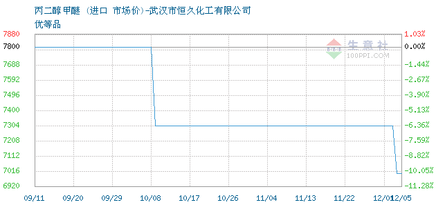 | 优等品 附加说明:【 大宗原料价格波动较快,价格随行就市,实单致电:157-9198-4079 】丙二醇甲醚 主要用作溶剂,在印刷油墨、涂料和化学品生产中有应用。 |