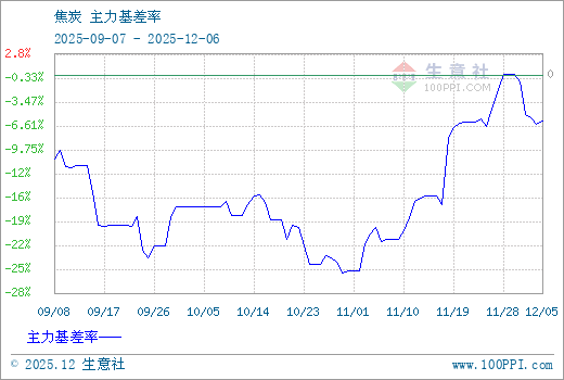 注: 1、从2025-09-07 至 2025-12-06期间,焦炭主力基差最大值为3.00,最小值为-370.75。